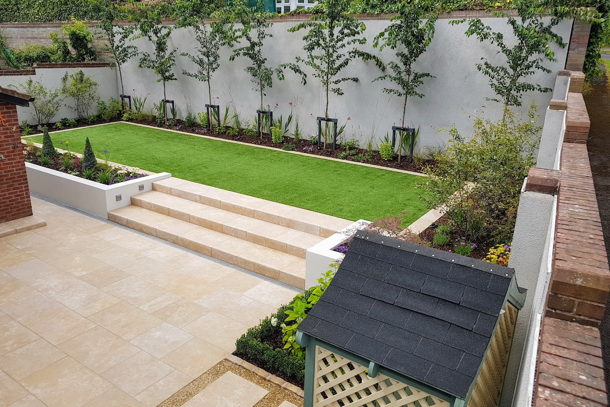A patio with a raised edge finish flush with the lawn will make your life easier when cutting the lawn too as well as looking amazing. We can incorporate all manner of features with your patio to include benches and fire pits and ponds.